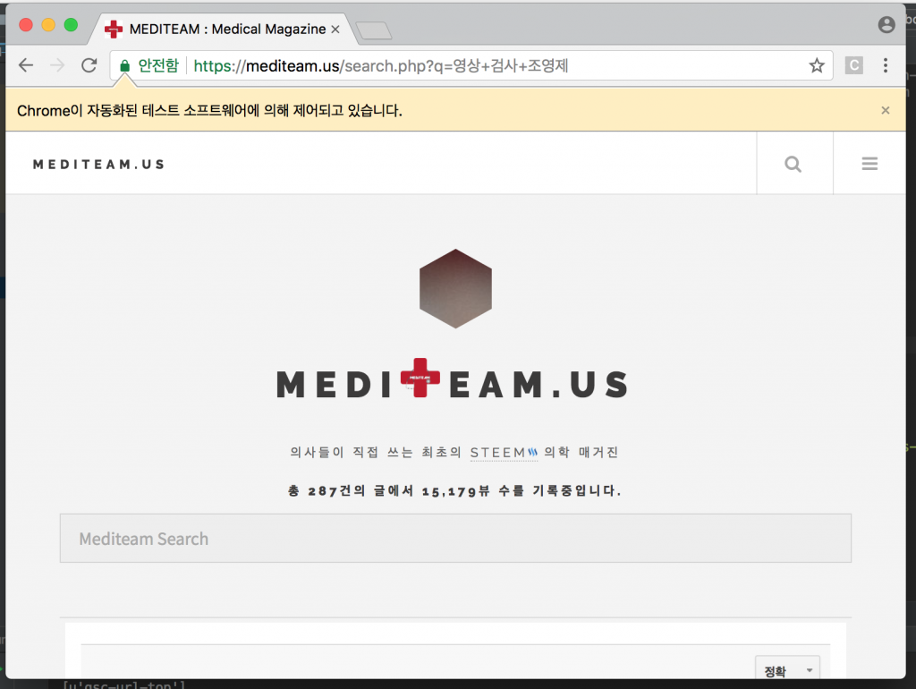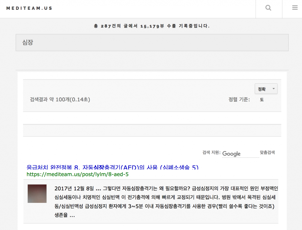 아래의 메디팀 사이트에 있는 구글 검색엔진을 이용할 경우 나오는 결과값이다. 그러나 실제 이 페이지는 달랑 몇줄의 자바스크립스로 쓰여진다.