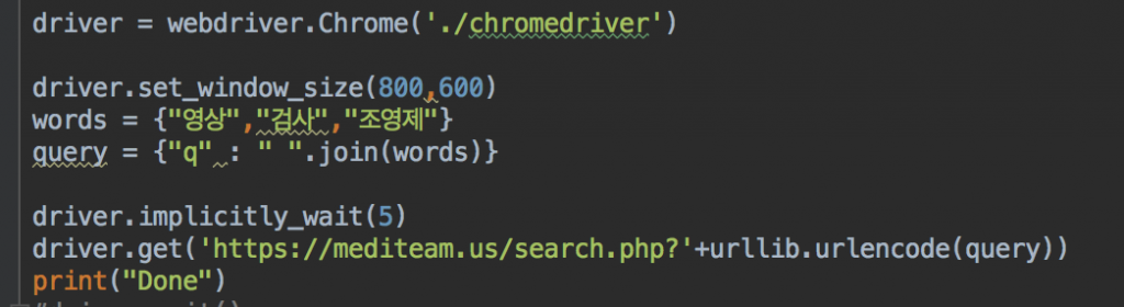 다음 편에서는 Explicit wait을 이용하여 세번째 소스로 실제 검색 결과를 받아오는 과정을 포스팅해보겠다.