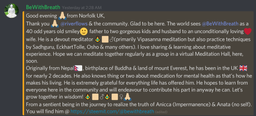 bewithbreath(25)•in #partiko•2478 days agoCalling all meditators and meditation enthusiasts 🧘🏼♂️🧘🏼♀️on #STEEM!Good morning Kind and Wonderful steemians, “Mindful Life” is inviting all meditators and meditation enthusiasts to join the mindful community. Warm-hearted invi...1799$1.25bewithbreath(25)•in partiko•2478 days agoCalling all meditators and meditation enthusiasts 🧘🏼♂️🧘🏼♀️on #STEEM!Good morning Kind and Wonderful steemians, “Mindful Life” is inviting all meditators and meditation enthusiasts to join the mindful community. Warm-hearted invi...1799$1.25