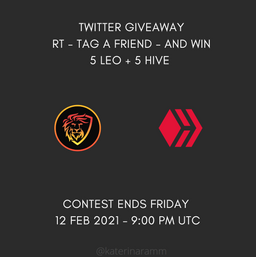 katerinaramm(25)•in #hive-167922•1798 days agoTwitter Giveaway (5 LEO & 5 HIVE) and noise.cash contest (0.5 BCH)I was having a conversation yesterday about social media, and I suggested that they made a giveaway via twitter ... after creating a new account. (they do not h...16katerinaramm(25)•in hive-167922•1798 days agoTwitter Giveaway (5 LEO & 5 HIVE) and noise.cash contest (0.5 BCH)I was having a conversation yesterday about social media, and I suggested that they made a giveaway via twitter ... after creating a new account. (they do not h...16