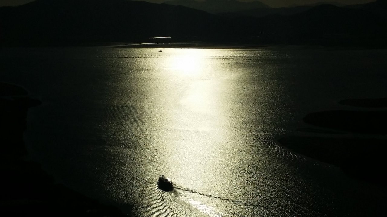 전망대에서 바라본 강위의 배가 하늘에서 내리쬐는 햇빛을 피해가득 너무 운치 있네요 ㅎㅎ
