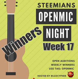 luzcypher(25)•in #openmic•3277 days agoOpen Mic Week 17 Winners - See Who Won Open Mic And Join Us This WeekOpen Mic Winners From Week 17 Thanks to everyone who entered and supported Open Mic Week 17. Community support for Open Mic has been tremendous and is one of ma...40416$2.73luzcypher(25)•in openmic•3277 days agoOpen Mic Week 17 Winners - See Who Won Open Mic And Join Us This WeekOpen Mic Winners From Week 17 Thanks to everyone who entered and supported Open Mic Week 17. Community support for Open Mic has been tremendous and is one of ma...40416$2.73