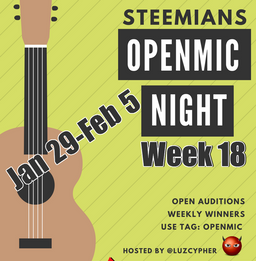 luzcypher(25)•in #openmic•3273 days agoOpen Mic Week 18 - See Who Played This Week At Open Mic And Vote For Your Favorite Steemian MusiciansOpen Mic Week 18 performances are in and there's still time to vote for your favorites. Open Mic is an online, live music venue to give musicians a chance to sh...2368$3.23luzcypher(25)•in openmic•3273 days agoOpen Mic Week 18 - See Who Played This Week At Open Mic And Vote For Your Favorite Steemian MusiciansOpen Mic Week 18 performances are in and there's still time to vote for your favorites. Open Mic is an online, live music venue to give musicians a chance to sh...2368$3.23