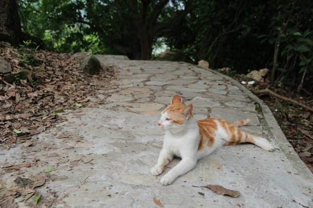 路上遇到的小貓咪,牠都不怕人,安然的路中心睡覺,一副「我才管你」的樣子,睡眼惺忪的牠真的很可愛。