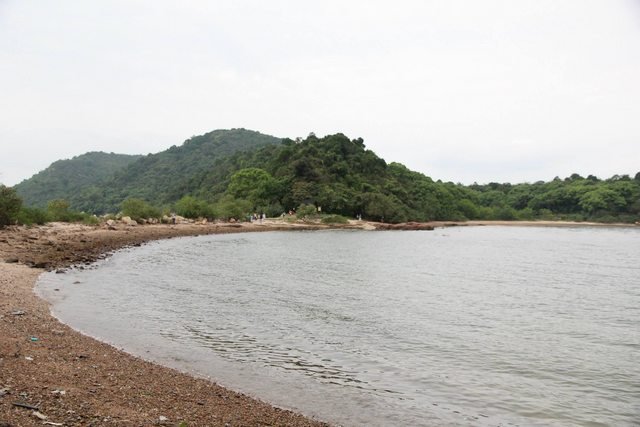 我穿過了叢林,來到了一個小石灘,這邊就是有名的沙洲,於潮漲時水面會蓋過這條通往對岸小島的小路。這天我查好了時間,在潮退時到來,走在沙洲上,通往對面的小島走走。