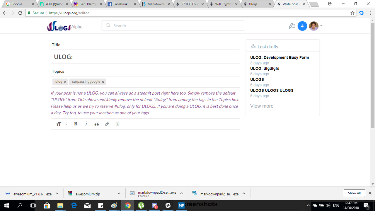 - Writing a post page will show 2 default tags.the 'ulog' & 'surpassinggoogle'