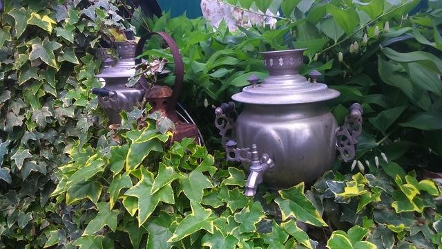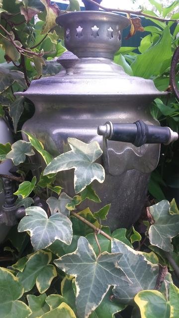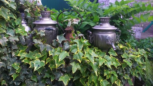 Friends, once upon a time in every home, could be seen in the kitchen samovar.. Now it is a rarity. People have replaced the samovar with a more convenient invention-which is called an electric kettle.. But the interesting thing is that it works on the principle of a samovar, and that it is plastic and lightweight. People gave me a samovar , which they do not need, I use them for beauty in the yard..See for yourself..