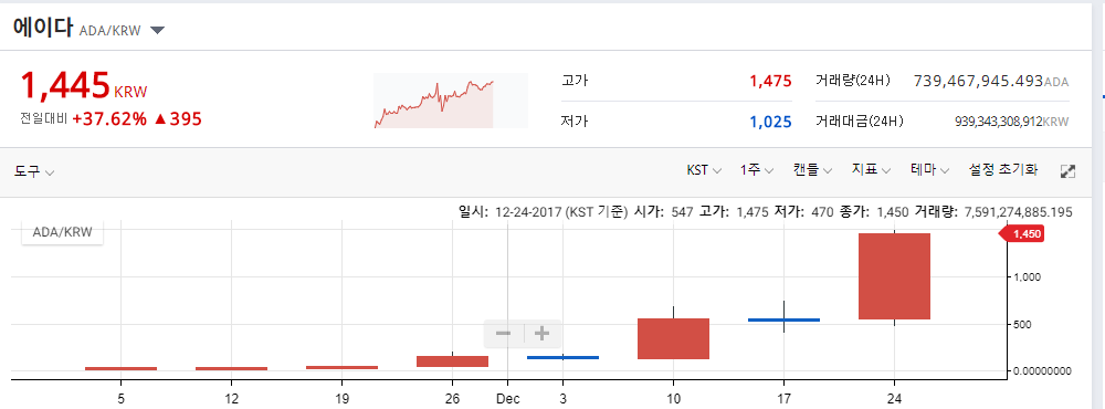 에이다는 10월 국내 거래소인 업비트 상장 첫날