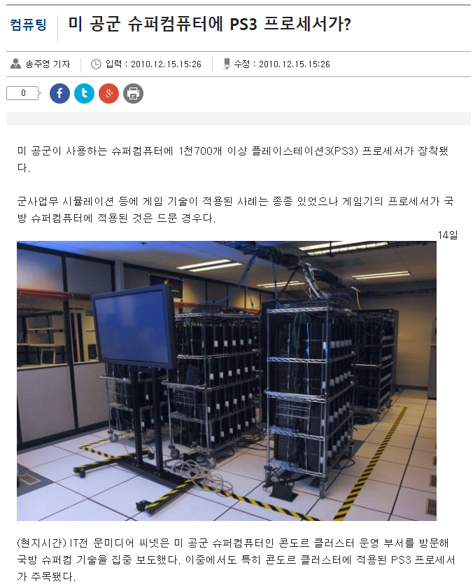 미 공군의 슈퍼 컴퓨터에 PS3의 프로세서가 사용되기에 이릅니다.