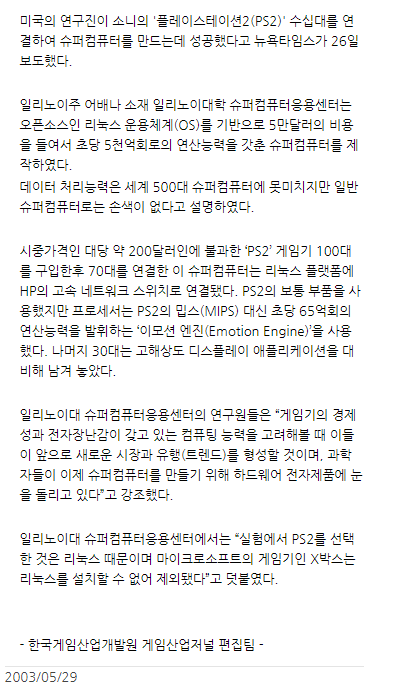 70대를 이용하여 슈퍼 컴퓨터를 구현한 사례가 있는데요.