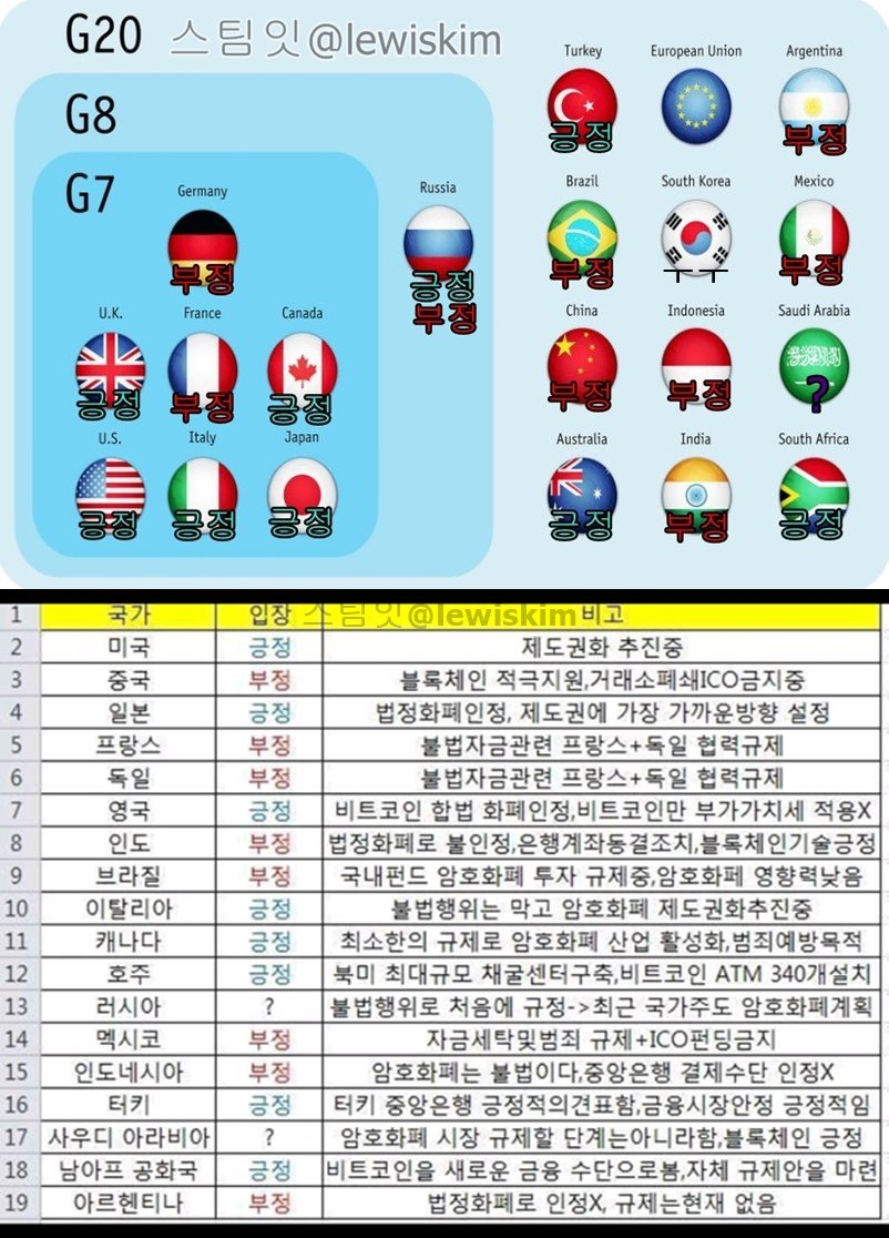 (G20 정상회담) 국가별 가상화폐 시각을 사진 하나로 요약 해보았습니다.