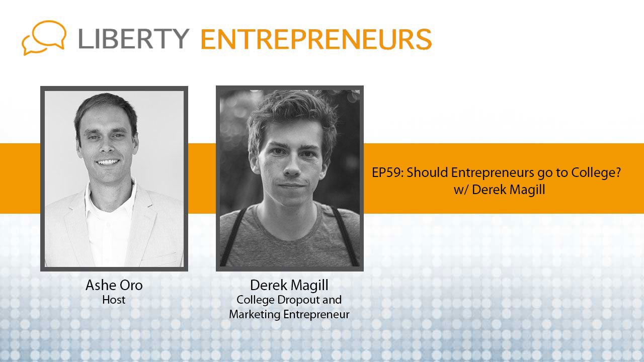Today’s guest is Derek Magill, college dropout turned online marketing entrepreneur, author and business strategist. Like most high school students, Derek was told that college was the absolute best idea to ensure he lands a job and makes a “good living”.