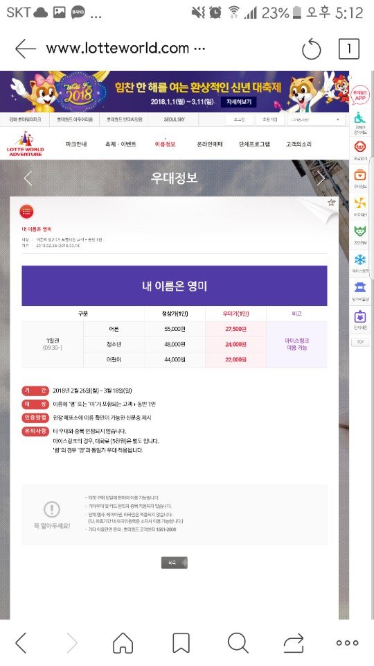 이름에 ‘영’이나 ‘미’ 둘 중 하나만 들어가도 자유이용권을 반값 할인한다고 합니다.