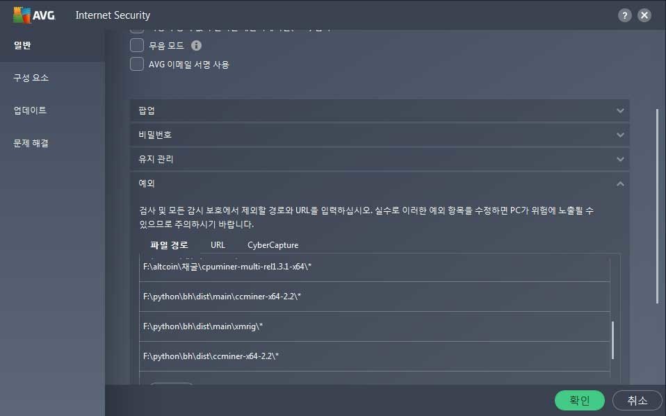 마이너를 바이러스 파일로 인식할 수 있습니다. 마이너는 원하시는걸로 바꿔서 사용하셔도 되요.