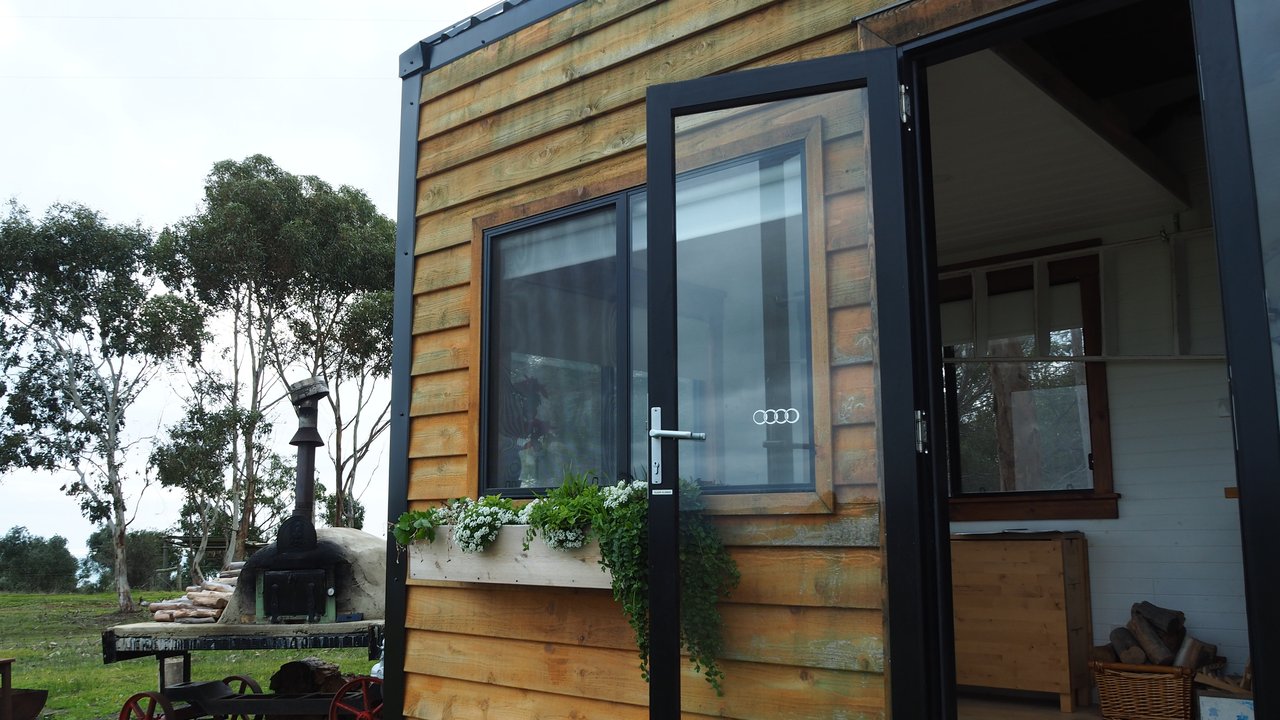 The THOW was built by the owner himself and sits on a large piece of land with lovely views of trees, and meadows and the beach in the distance with lots of kangaroos to keep you company.