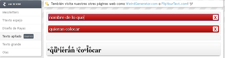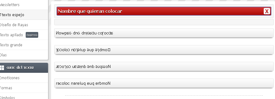 Texto Espejo. Esta opción nos muestra nuestro texto al revés... Como en un espejo.