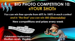 xpilar(25)•in #xpilarcontest•2719 days agoNew #xpilarcontest Big photo competition 10 "Your Shot" You can win free upvote up to 100% in every competition You can win free upvote from 60% to 100% in each contest and in “the final“ you can win SBD (Steemdollar)  ...8897$3.86xpilar(25)•in xpilarcontest•2719 days agoNew #xpilarcontest Big photo competition 10 "Your Shot" You can win free upvote up to 100% in every competition You can win free upvote from 60% to 100% in each contest and in “the final“ you can win SBD (Steemdollar)  ...8897$3.86