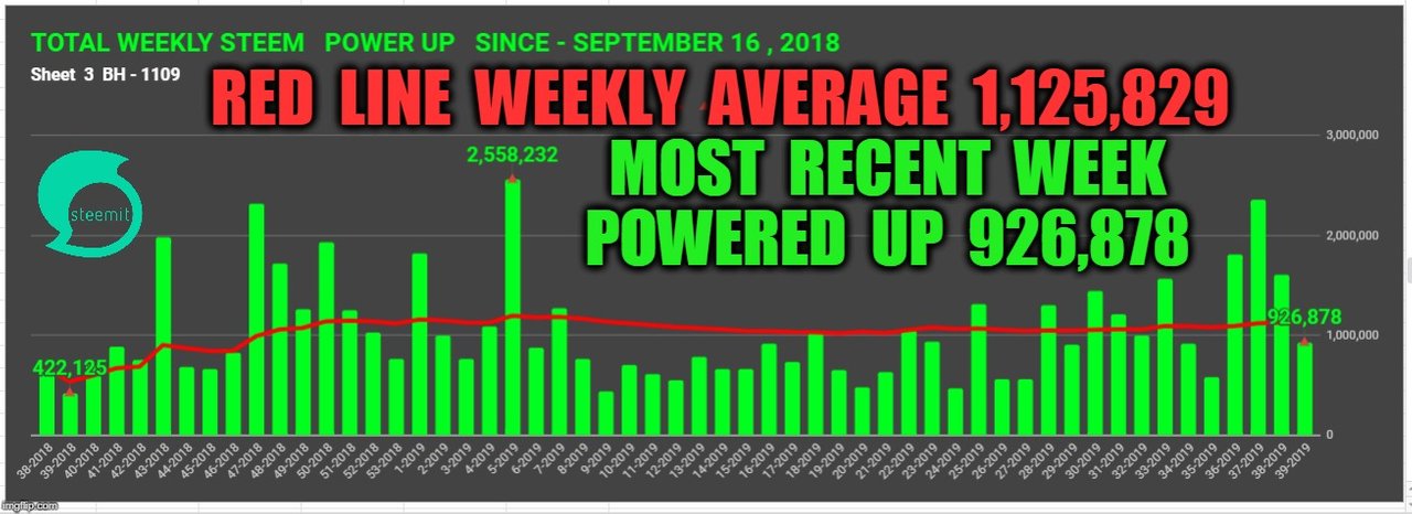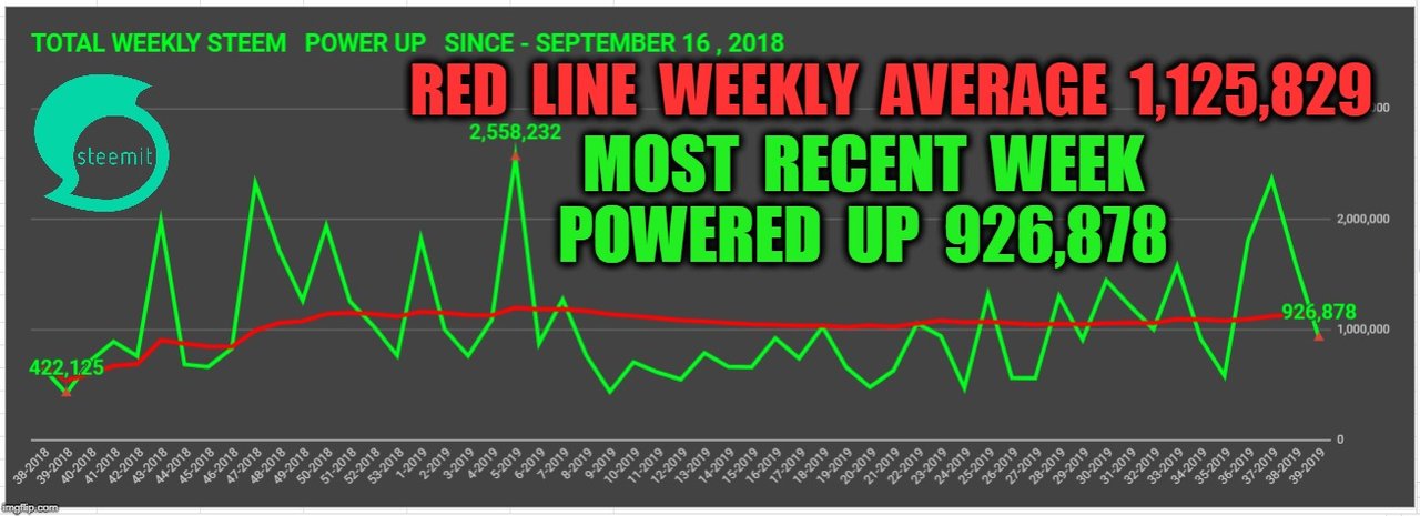 Weekly Steem Powered Up into Steem Power is BELOW the average Line this past week by 198,951 LESS Weekly Steem Powered Up into Steem Power this past week than the average weekly Steem Powered Up per week.