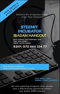fifebanks(25)•in #promo-steem•2889 days ago♨IBADAN STEEMIANS, ARE YOU READY?!!!♨This weekend Ibadan is going to lit up as one of our Steemit Incubator member, @virtuousmercy hosts me @fifebanks for our first ever Steemit Incubator Ibadan Ha...76$1.84fifebanks(25)•in promo-steem•2889 days ago♨IBADAN STEEMIANS, ARE YOU READY?!!!♨This weekend Ibadan is going to lit up as one of our Steemit Incubator member, @virtuousmercy hosts me @fifebanks for our first ever Steemit Incubator Ibadan Ha...76$1.84