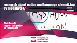 megabyte77(25)•in #en•2773 days agoresearch about nation and language steemit tagSupport this project on Fundition.io...80$0.00megabyte77(25)•in en•2773 days agoresearch about nation and language steemit tagSupport this project on Fundition.io...80$0.00