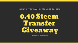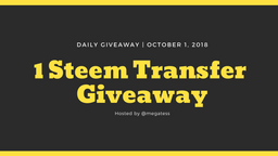 megatess(25)•in #giveaway•2664 days ago1 Steem Transfer Daily Giveaway! | `October 1, 2018...480$0.01megatess(25)•in giveaway•2664 days ago1 Steem Transfer Daily Giveaway! | `October 1, 2018...480$0.01