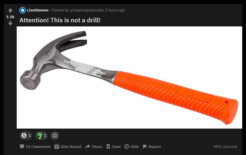 Attention! This is not a drill! (Photo of a hammer)