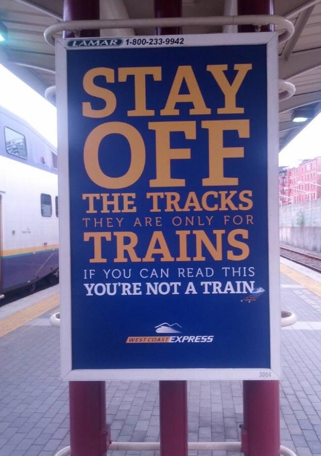 Stay off the tracks. They are only for trains. If you can read this, you're not a train. West Coast Express.
