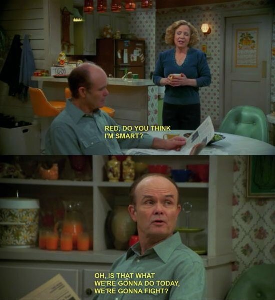 Kitty Forman from That 70s Show: Red, do you think I'm smart? Red Forman: Oh, is that what we're gonna do today, we're gonna fight?