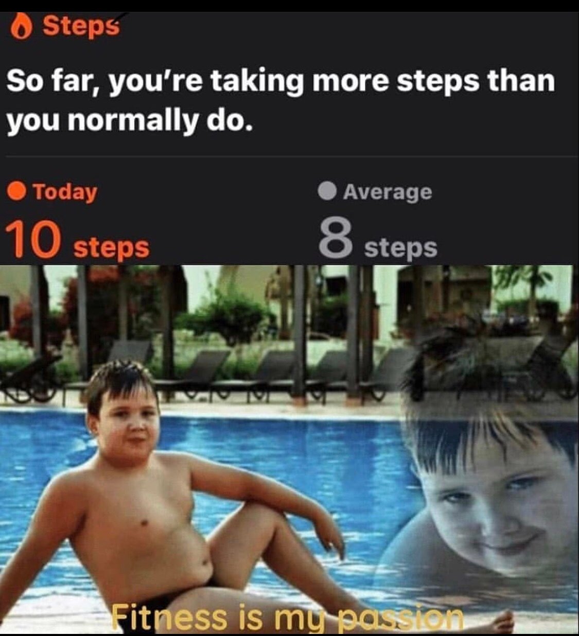 So far, you're taking more steps than you normally do. Today: 10 steps. Average: 8 steps. Fitness is my passion.Disclaimer