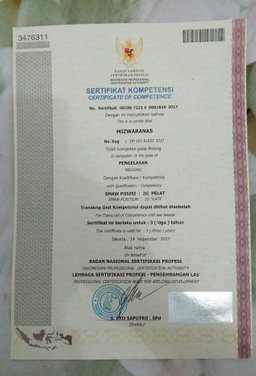 miswaranas(25)•in #w•2926 days agoSertifikat keahlianWelder muda, itulah kami saat ini, tapi baru siap belajar belum mendapatkan pekerjaan, mudah mudahan berguna ilmu dan sertifikat keahlian profesi ini....40$0.00miswaranas(25)•in w•2926 days agoSertifikat keahlianWelder muda, itulah kami saat ini, tapi baru siap belajar belum mendapatkan pekerjaan, mudah mudahan berguna ilmu dan sertifikat keahlian profesi ini....40$0.00