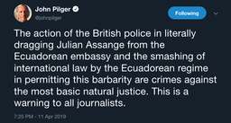 v4vapid(25)•in #wikileaks•2490 days agoA Day That Will Live On In Infamy | Julian Assange Asylum Revoked, Arrested By UK Policehttp://cdn.cnn.com/cnnnext/dam/assets/190411061952-assange-arrest-live-video.jpg Source A Sad Day - A Shameful Day - A Travesty of Justice As News of Assange's ...22131$6.94v4vapid(25)•in wikileaks•2490 days agoA Day That Will Live On In Infamy | Julian Assange Asylum Revoked, Arrested By UK Policehttp://cdn.cnn.com/cnnnext/dam/assets/190411061952-assange-arrest-live-video.jpg Source A Sad Day - A Shameful Day - A Travesty of Justice As News of Assange's ...22131$6.94
