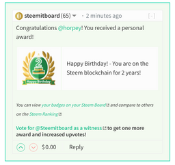 horpey(25)•in #steem•2390 days ago2 Years on SteemWhoot! With the twinkle of an eye, it has been more than two years I opened my Steem account. Thanks to Steemitboard for keeping me updated, I was notified a fe...10224$0.49horpey(25)•in steem•2390 days ago2 Years on SteemWhoot! With the twinkle of an eye, it has been more than two years I opened my Steem account. Thanks to Steemitboard for keeping me updated, I was notified a fe...10224$0.49