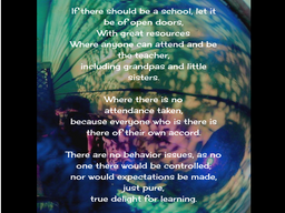 everlove(25)•in #education•3403 days agoPart III: What's Up With School, Anyway? If There Should Be a School-What That Could Look Like and Imagining a Life of FreedomIt's another great day to be a Steemian and investigate new perspectives. As you may know by now I am passionate about children. I am thrilled havin...6423$9.60everlove(25)•in education