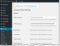 moizrajput(25)•in #wordpress•2911 days agoWordpress plugin that convert post into audio and podcastAmazon today launches polly wordpress plugin that gives voice to your blog. The produced audio can be listen in in the post. The plugin designed by Amazon and w...41$0.00moizrajput(25)•in wordpress•2911 days agoWordpress plugin that convert post into audio and podcastAmazon today launches polly wordpress plugin that gives voice to your blog. The produced audio can be listen in in the post. The plugin designed by Amazon and w...41$0.00