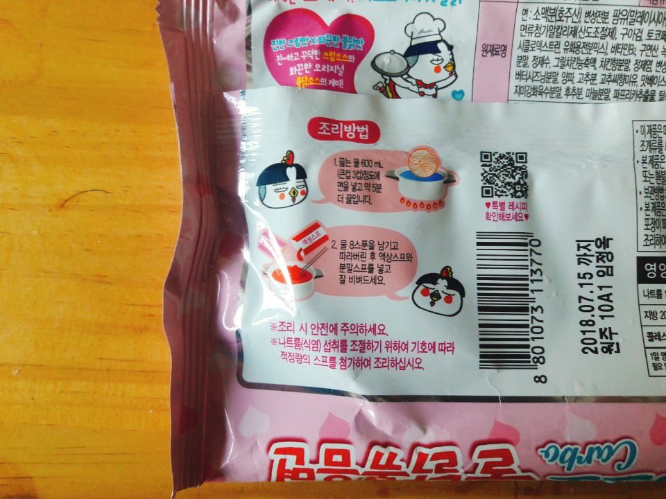 뒷면에는 조리방법,영양성분이 있네요