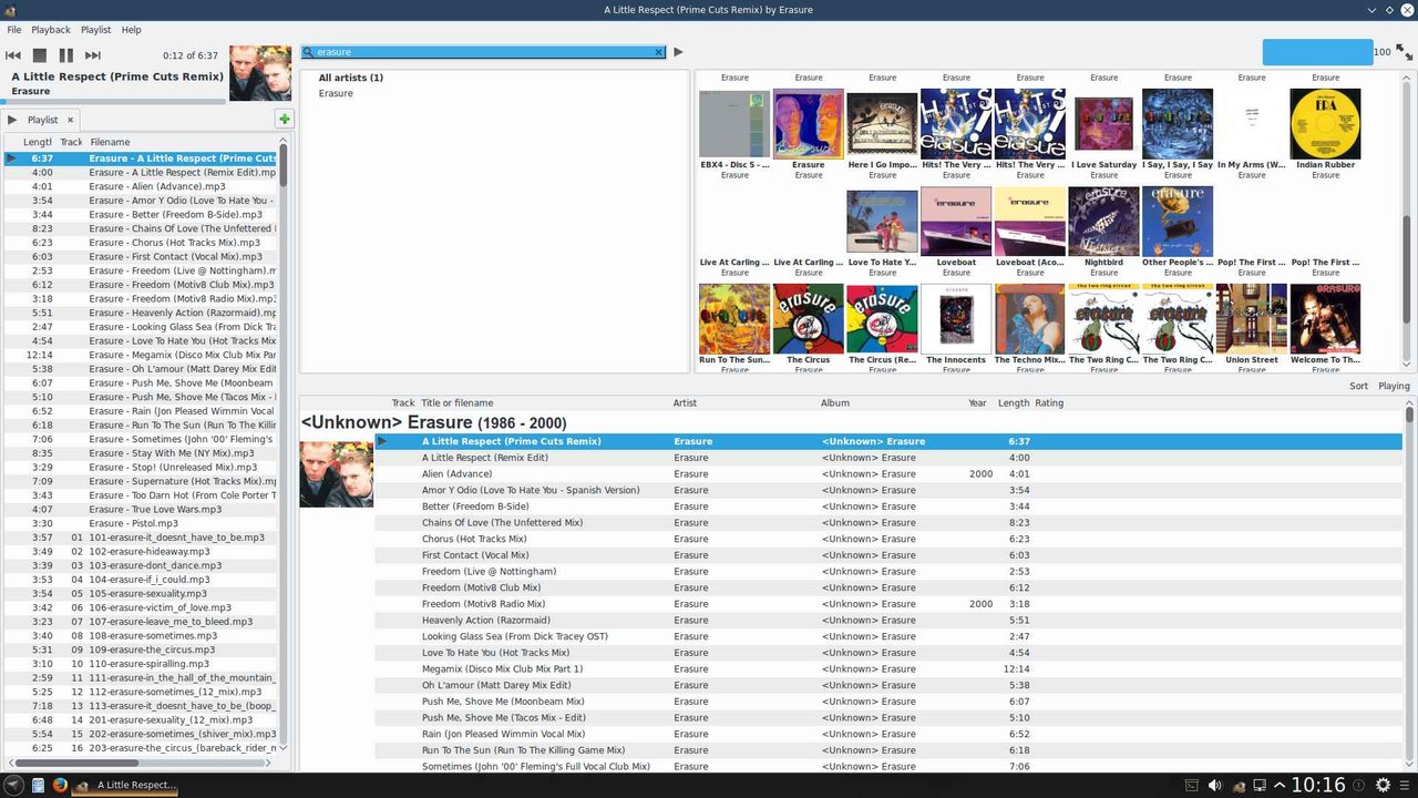 GMusicbrowser is a versatile music librarian program to index, sort and display your local collection in a pleasant way. It supports downloading cover pictures from the internet by default and is extremly efficient even handling large collections of ten-thousands of songs.
