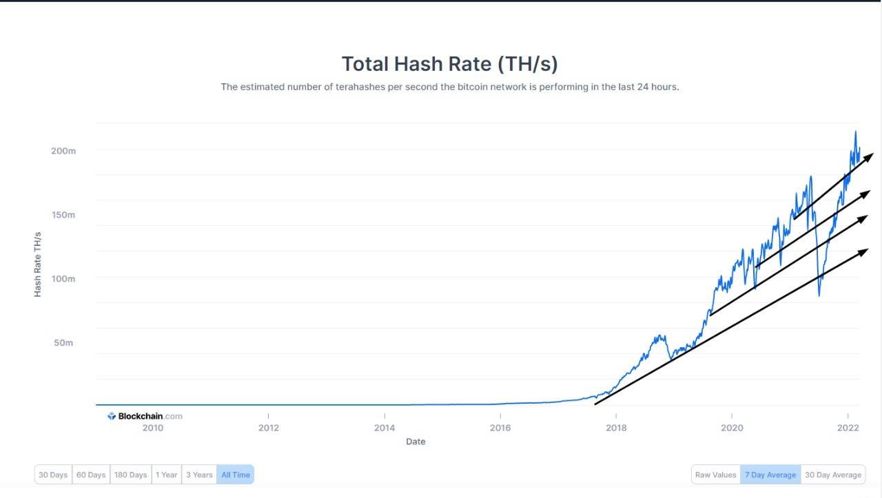 "On February 12, the Bitcoin network Hash Rate reached a new all-time high of 248.11 million terahashes per second (TH/s). In the last hours, the Bitcoin Hash Rate has been around 209.6M TH/s, according to Blockchain.com data."