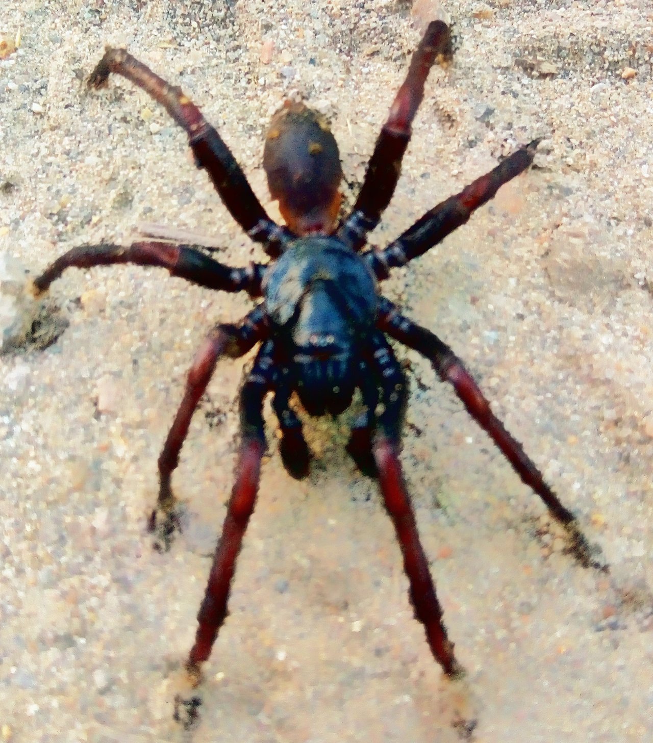 It's called a tarantula. It's one of those very large and hairy spiders. This spider belongs to the family Theraphosidae. In North Sumatra, there is a special tarantula breeding location for Indonesian species.