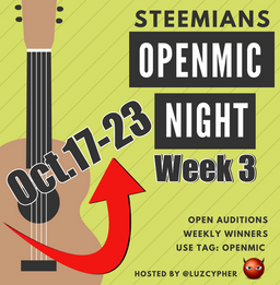 luzcypher(25)•in #openmic•3380 days agoOpen Mic Week 4 - Record Your Musical Performance On Your Phone, Enter And Win Steem - Sponsored by @luzcypherJoin Open Mic Night Week 4 and win Steem. Just Record, Post, Win! Come play or sing a song for Steemit. Even if you don't play an instrument you can still show ...25240$2.12luzcypher(25)•in openmic•3380 days agoOpen Mic Week 4 - Record Your Musical Performance On Your Phone, Enter And Win Steem - Sponsored by @luzcypherJoin Open Mic Night Week 4 and win Steem. Just Record, Post, Win! Come play or sing a song for Steemit. Even if you don't play an instrument you can still show ...25240$2.12