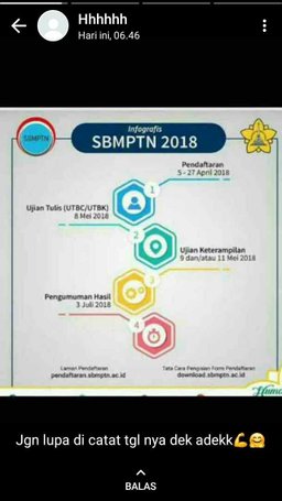 muhammadsyaiban(25)•in #esteem•2837 days agoPembukaan SBPTN 2018Pemberitahuan bagi teman - teman steemit yang berkeinginan untuk melanjutkan pendidikan ke universitas sekarang sudah di buka SBPTN 2018. Pendaftarannya mulai d...110$0.18muhammadsyaiban(25)•in esteem•2837 days agoPembukaan SBPTN 2018Pemberitahuan bagi teman - teman steemit yang berkeinginan untuk melanjutkan pendidikan ke universitas sekarang sudah di buka SBPTN 2018. Pendaftarannya mulai d...110$0.18