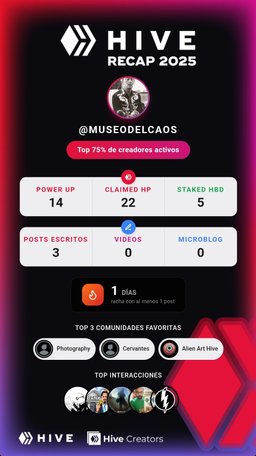 museodelcaos(25)•in #hive-133872•13 days agoHive RECAP 2025 - Hive CreatorsCompartiendo mi Hive RECAP de 2025 https://recap.hivecreators.co/ por @hivecreators...1museodelcaos(25)•in hive-133872•13 days agoHive RECAP 2025 - Hive CreatorsCompartiendo mi Hive RECAP de 2025 https://recap.hivecreators.co/ por @hivecreators...1