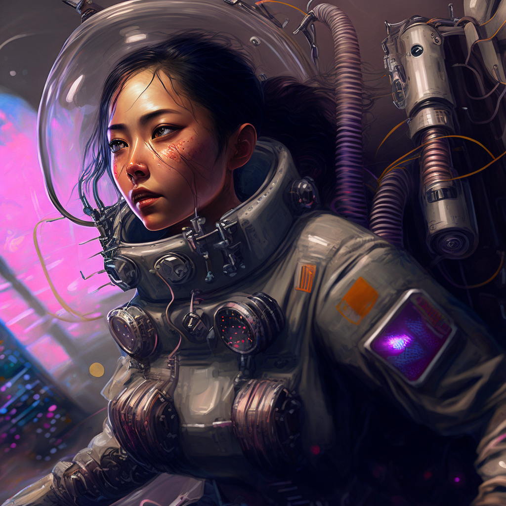 These prompts used a combination of "cyberpunk" and "atompunk" for a slightly retro yet futuristic atmosphere.