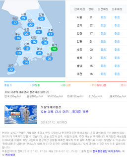 kstop1(25)•in #zzan•2378 days ago[Weather] 전국 미세먼지, 초미세먼지 현황 정보전국 미세먼지, 초미세먼지 현황 정보입니다. [1] 아래 그림은 미세먼지(입자 지름 2.5μm초과~10μm미만) 현황 정보입니다. 현재, 미세먼지(입자 지름 2.5μm초과~10μm미만)는 울산 보통수준이며, 나머지 지역은 좋음수준입니다. [2] 아래 그림은 초미세먼지(입자 지름 2.5μ...3kstop1(25)•in zzan•2378 days ago[Weather] 전국 미세먼지, 초미세먼지 현황 정보전국 미세먼지, 초미세먼지 현황 정보입니다. [1] 아래 그림은 미세먼지(입자 지름 2.5μm초과~10μm미만) 현황 정보입니다. 현재, 미세먼지(입자 지름 2.5μm초과~10μm미만)는 울산 보통수준이며, 나머지 지역은 좋음수준입니다. [2] 아래 그림은 초미세먼지(입자 지름 2.5μ...3