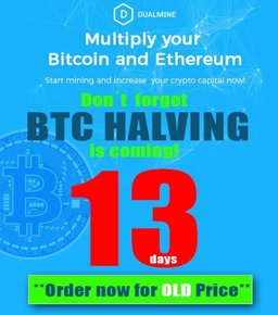 nelar(25)•in #covid•2085 days ago13 DAYS LEFTHey Friends, BTC HALVING is coming! Use the last chance to order cheap Cloudmining Power in these strange days. Register at: http://www.dualmine.com/?ref=75293 ...0nelar(25)•in covid•2085 days ago13 DAYS LEFTHey Friends, BTC HALVING is coming! Use the last chance to order cheap Cloudmining Power in these strange days. Register at: http://www.dualmine.com/?ref=75293 ...0