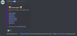 newsticker(25)•in #deutsch•2462 days agoGewinner der GSB-Quasselstunde vom 18.4.2019 | Die Gewinner!Die wöchentliche Quasselstunde beim GSB ist vorbei. Rund 2,5 lustige, unterhaltsame, aber auch informative Stunden haben die Blockchain und deren Gemeinschaft b...0newsticker(25)•in deutsch•2462 days agoGewinner der GSB-Quasselstunde vom 18.4.2019 | Die Gewinner!Die wöchentliche Quasselstunde beim GSB ist vorbei. Rund 2,5 lustige, unterhaltsame, aber auch informative Stunden haben die Blockchain und deren Gemeinschaft b...0