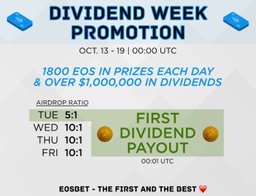 nickl(25)•in #eos•2639 days agoEOSBet - Dividends Every Second + 0.25% bonus promotion! (STARTING in 5.5 HOURS)Dividends every second! In a about 5.5 hours EOSBet will introduce dividends every second. EOSBet is sharing the house profit with every BET holder. You are soo...10$0.00nickl(25)•in eos•2639 days agoEOSBet - Dividends Every Second + 0.25% bonus promotion! (STARTING in 5.5 HOURS)Dividends every second! In a about 5.5 hours EOSBet will introduce dividends every second. EOSBet is sharing the house profit with every BET holder. You are soo...10$0.00