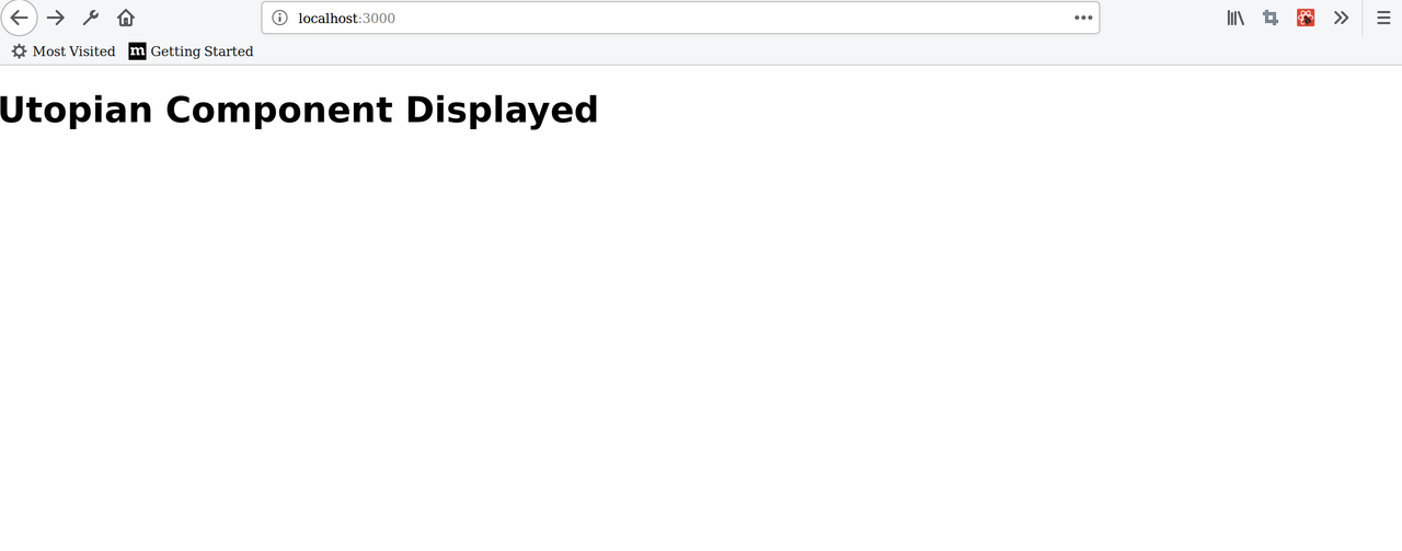 Be sure to import the new component into the head of the app.js component and to display it in the return method via <Utopian />. Now we have a very basic component set up and imported to app.js. Run npm start and you should see this: