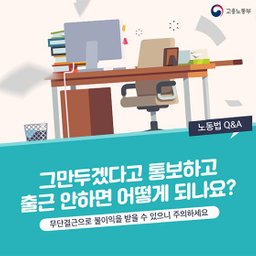 parkname(25)•in #kr•2599 days ago근로자도 사업주도 이별에는 준비가 필요합니다..이쪽 계통에 제가 전문가는 아닙니다만, "고용노동부 누리집"에 "그만두겠다고 통보하고 출근 안하면 어떻게 되나요?"라는 노동법 문답자료가 있어서 공유 차원에서 게시합니다. 이런 정보들을 짬짬히 기억하면 유사 상황 발생시 좀 편안하게 대처가 가능하겠지요. --- 자 그럼 시작합니다.. 그...295$0.15parkname(25)•in kr•2599 days ago근로자도 사업주도 이별에는 준비가 필요합니다..이쪽 계통에 제가 전문가는 아닙니다만, "고용노동부 누리집"에 "그만두겠다고 통보하고 출근 안하면 어떻게 되나요?"라는 노동법 문답자료가 있어서 공유 차원에서 게시합니다. 이런 정보들을 짬짬히 기억하면 유사 상황 발생시 좀 편안하게 대처가 가능하겠지요. --- 자 그럼 시작합니다.. 그...295$0.15