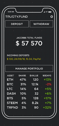 ash(25)•in #bitshares•2824 days agoBitShares: Trusty.Fund a mobile One-Click portfolio manager using the DEX (2018)I decided to give trusty.fund a test run after they announced on the recent hangout Sign-Up It's mobile only, so you need to either use your mobile chrome brows...4ash(25)•in bitshares•2824 days agoBitShares: Trusty.Fund a mobile One-Click portfolio manager using the DEX (2018)I decided to give trusty.fund a test run after they announced on the recent hangout Sign-Up It's mobile only, so you need to either use your mobile chrome brows...4