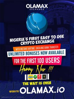 olamax(25)•in #olamax•2533 days agoThe Promo You Have Been Waiting For. (OLAMAX BIGGEST PROMO EVER)The wait is over, get lot of unlimited bonuses when you transact on Nigeria’s 1st ever easy to use crypto exchange with INSTANT Airtime, Data and Bank Transfer ...10olamax(25)•in olamax•2533 days agoThe Promo You Have Been Waiting For. (OLAMAX BIGGEST PROMO EVER)The wait is over, get lot of unlimited bonuses when you transact on Nigeria’s 1st ever easy to use crypto exchange with INSTANT Airtime, Data and Bank Transfer ...10